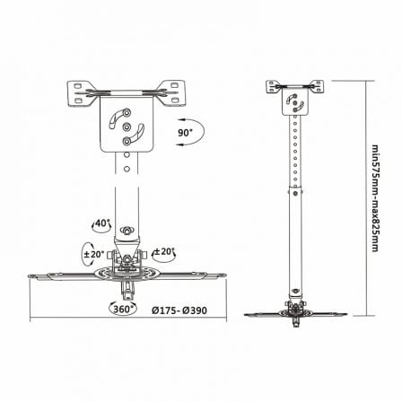 Soporte de techo para proyector aisens cp02tsre-051/ giratorio-inclinable-extensible/ hasta 20kg
